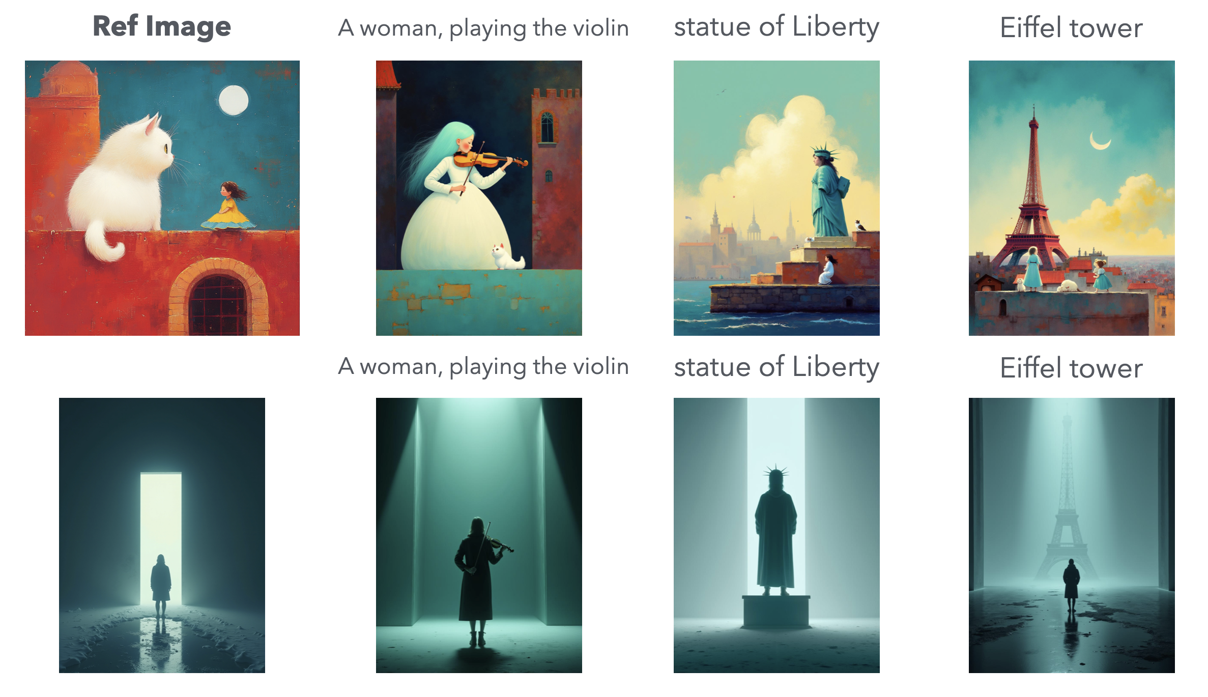 This model supports image reference, but is not for fine-grained style transfer or character consistency, which means that there exists a trade-off between content leakage and style transfer. We don't find similar properties in FLUX.1-dev (DiT-based) as in InstantStyle (UNet-based). It may take several attempts to get satisfied results. Furthermore, current released model may suffer from limited diversity, thus cannot cover some styles or concepts,