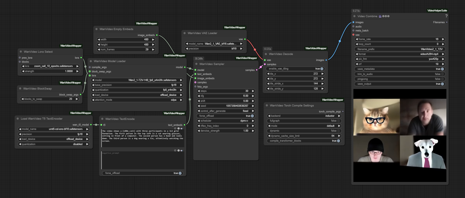 This LoRA is trained on the Wan2.1 14B T2V model and allows you to generate videos of Zoom calls featuring whatever character you want!