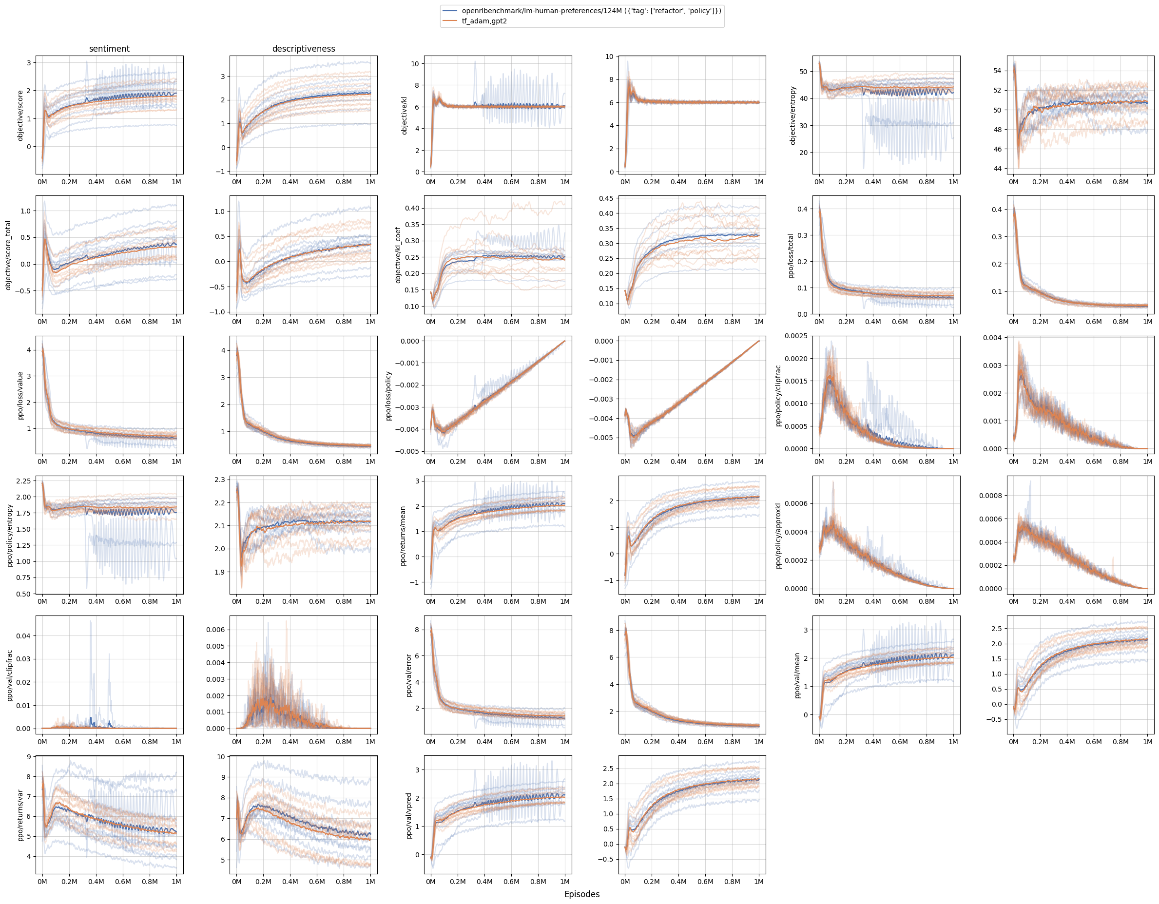 epsin pytorch adam and tensorflow adam, then pytorch-adam uses a much smaller normalization term than tensorflow-adam in the early phase of training. In other words, pytorch adam goes for more aggressive gradient updates early in the training. Our experiments support this finding, as we will demonstrate below.How does this impact reproducibility and performance? To align settings, we record the original query, response, and rewards from https://github.com/openai/lm-human-preferences and save them in https://huggingface.co/datasets/vwxyzjn/lm-human-preferences-debug/tree/main. I also record the metrics of the first two epochs of training with TF1’s