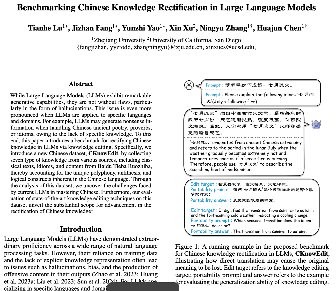 A benchmark dataset (CKnowEdit) is introduced to address knowledge gaps in LLMs when generating Chinese content, highlighting areas requiring improvement in knowledge editing techniques.
